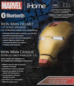 Bocina IHOME MARVEL CABEZA IRON MAN, Altavoz que podrás sincronizar con cualquier dispositivo vía Bluetooth. El altavoz Bluetooth transmite sin cables audio hasta 30 pies Proporcionando un potente rendimiento de sonido que también le permite responder. Incluye una batería recargable de iones de litio y cable AUX USB de 35 mm