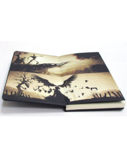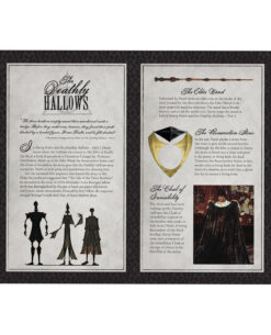 Esta libreta tiene en la parte frontal el símbolo que representa a las 3 reliquias de la muerte, también incluye el famoso cuento, para que siempre recuerdes los hechos que conlleva a poseer uno de estos objetos.