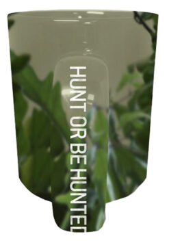 Esta taza es de una resistente cerámica que hasta podrías usarla como arma, (si es que un zombie te quiere morder), es de una capacidad de 16 onzas, viene con la imagen de Rick Hunter con la leyenda de Hunt or be Hunter.