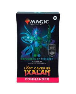 Consigue un mazo listo para jugar nada más sacarlo de la caja y experimenta el formato multijugador más popular de Magic: The Gathering. La baraja Commander Lost Caverns of Ixalan Explorers of the Deep Commander incluye 1 baraja verde-azul de 100 cartas Magic (2 cartas legendarias tradicionales foil, 98 cartas no foil), un paquete de muestra de refuerzo de coleccionista de 2 cartas (contiene 2 cartas de borde alternativo, con 1 carta tradicional foil o no foil de rareza Rara o superior y 1 carta tradicional foil poco común), 1 Display Commander grabado en foil (una copia en cartulina gruesa de la carta de comandante con foil grabado en el borde y el arte de la carta), 10 fichas de doble cara, 1 caja de mazo (puede contener 100 cartas con fundas), 1 Life Wheel, 1 inserto de estrategia y 1 carta de referencia.