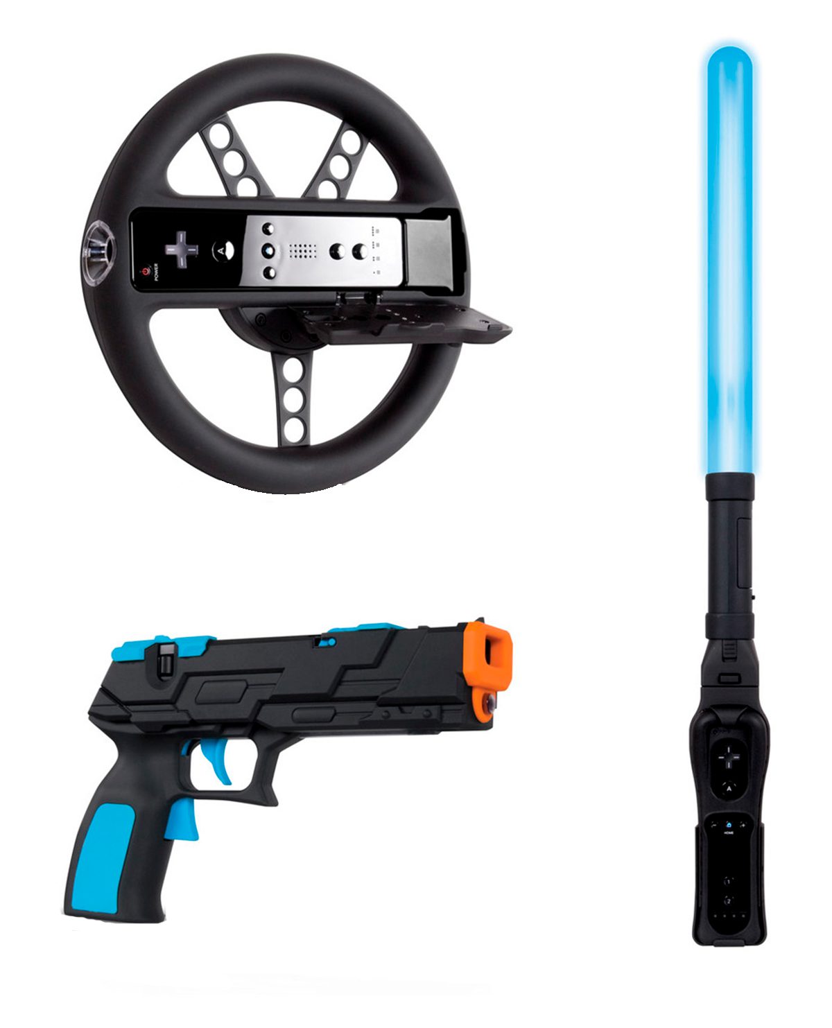 Tres de los adaptadores más comunes para controles Wii remote.