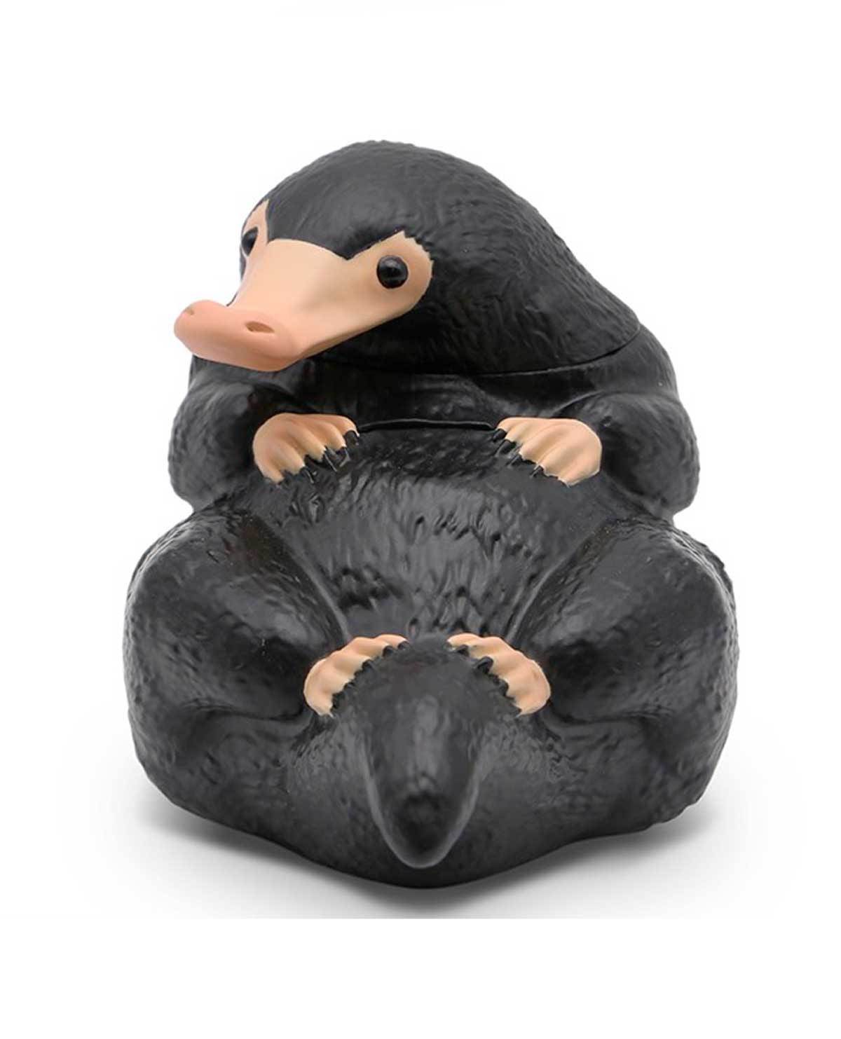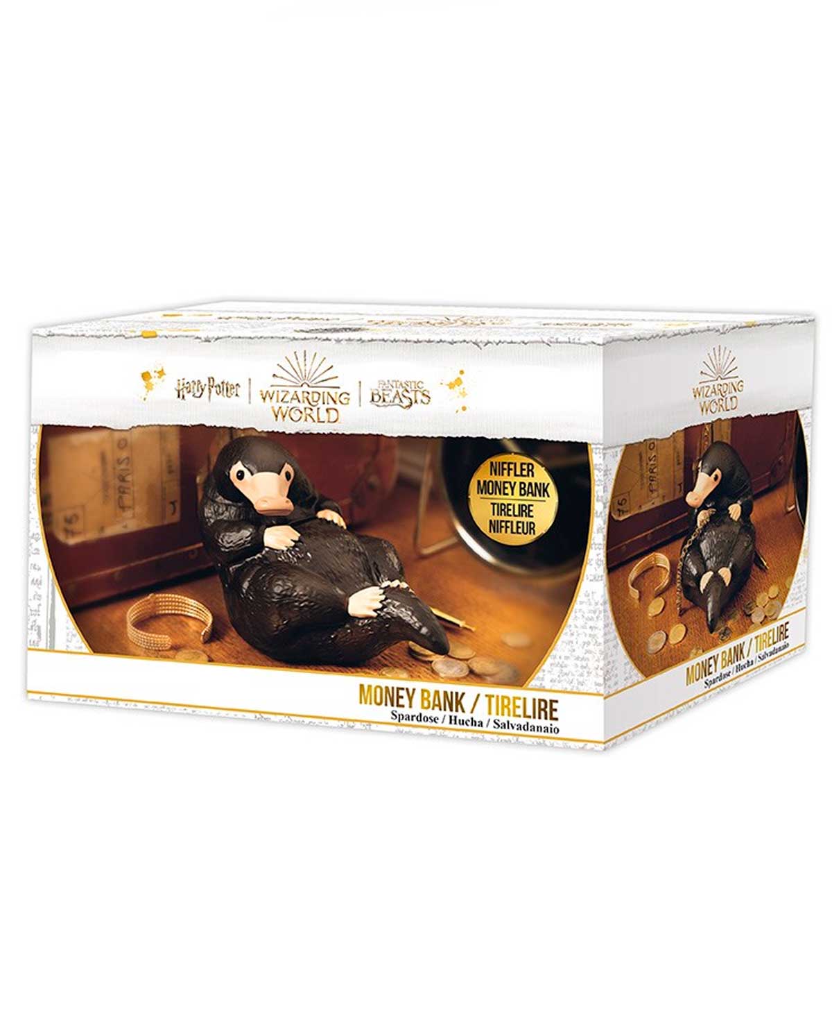 Es cierto, el Niffler es una bestia fantástica que se siente atraída por las cosas brillantes pero no te preocupes, ¡Se quedará con tu dinero como nadie! ¡Inserta galeones, sickles y knuts dentro de su pelaje esponjoso! ¡Descubre lo más lindo de los Animales Fantásticos con esta alcancia de Niffler!