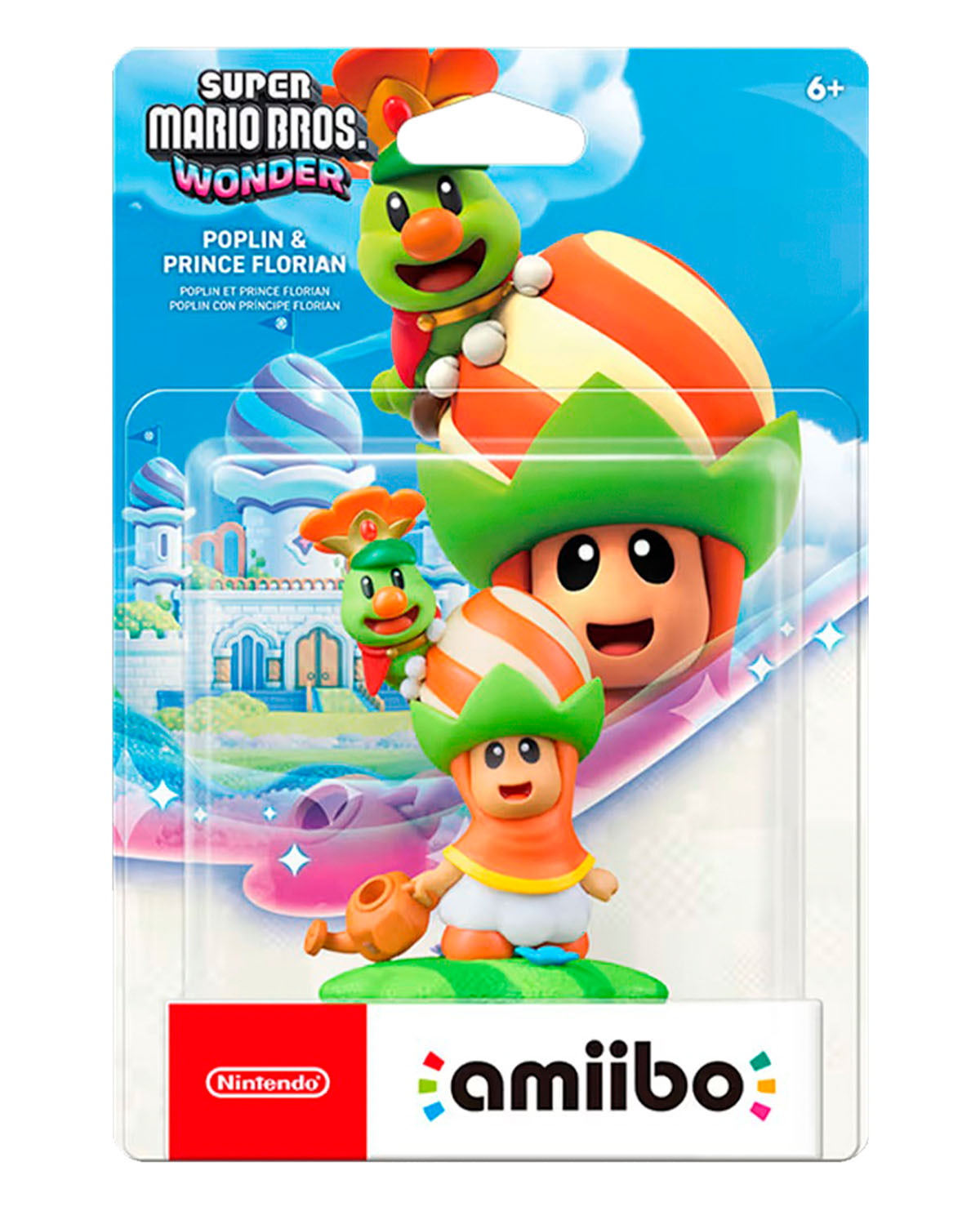 - Potenciadores útiles: Al tocar la figura amiibo™ de Poplin y el Príncipe Florian en Super Mario Bros. Wonder y ediciones compatibles, recibirás ayudas especiales que enriquecen tu experiencia de juego.
