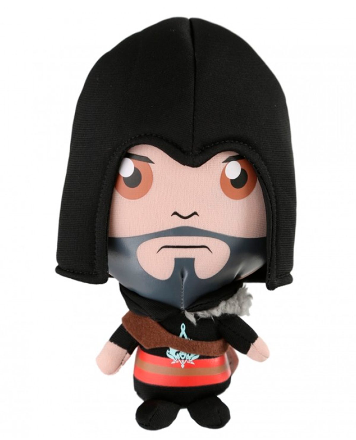 Peluche de Ezio Auditore en su etapa que comprede la línea del tiempo del juego Assassins Creed: Brotherhood. Tiene un practico gancho que permite usarlo como llavero.