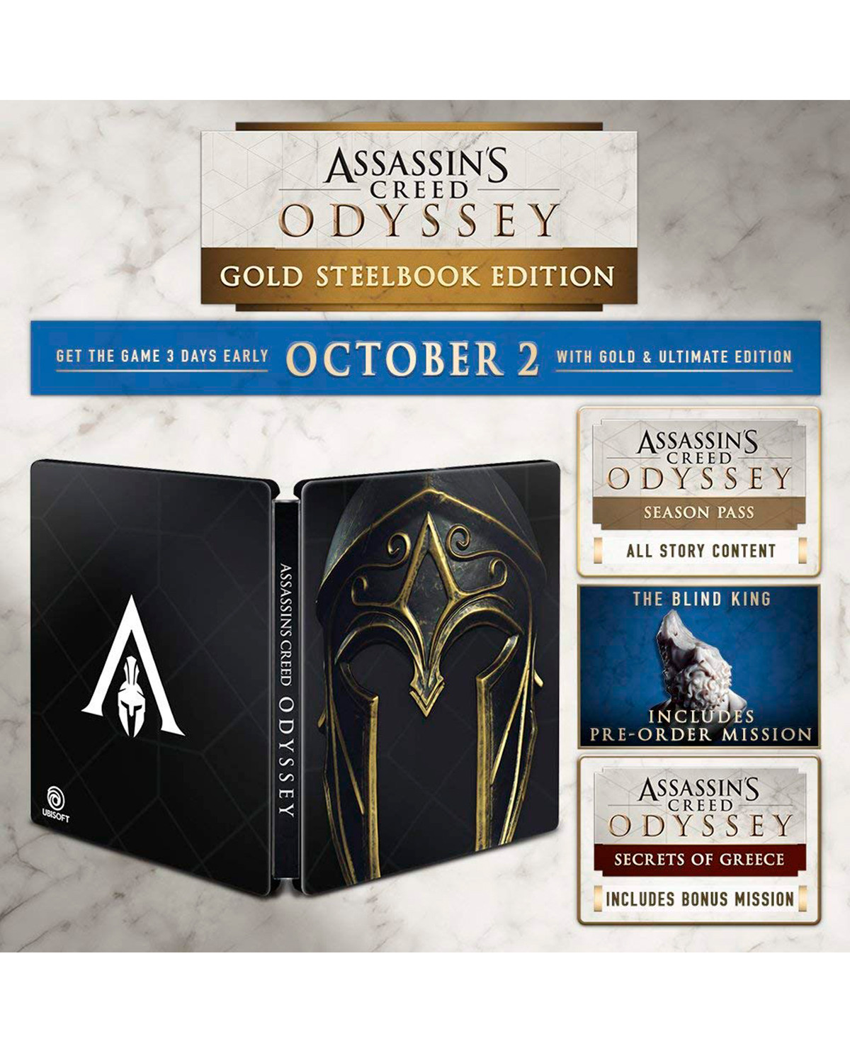 – ACCESO + PASE DE TEMPORADA CON ORO – Obtén el juego tres días antes y continúa tu odisea con el Pase de temporada.