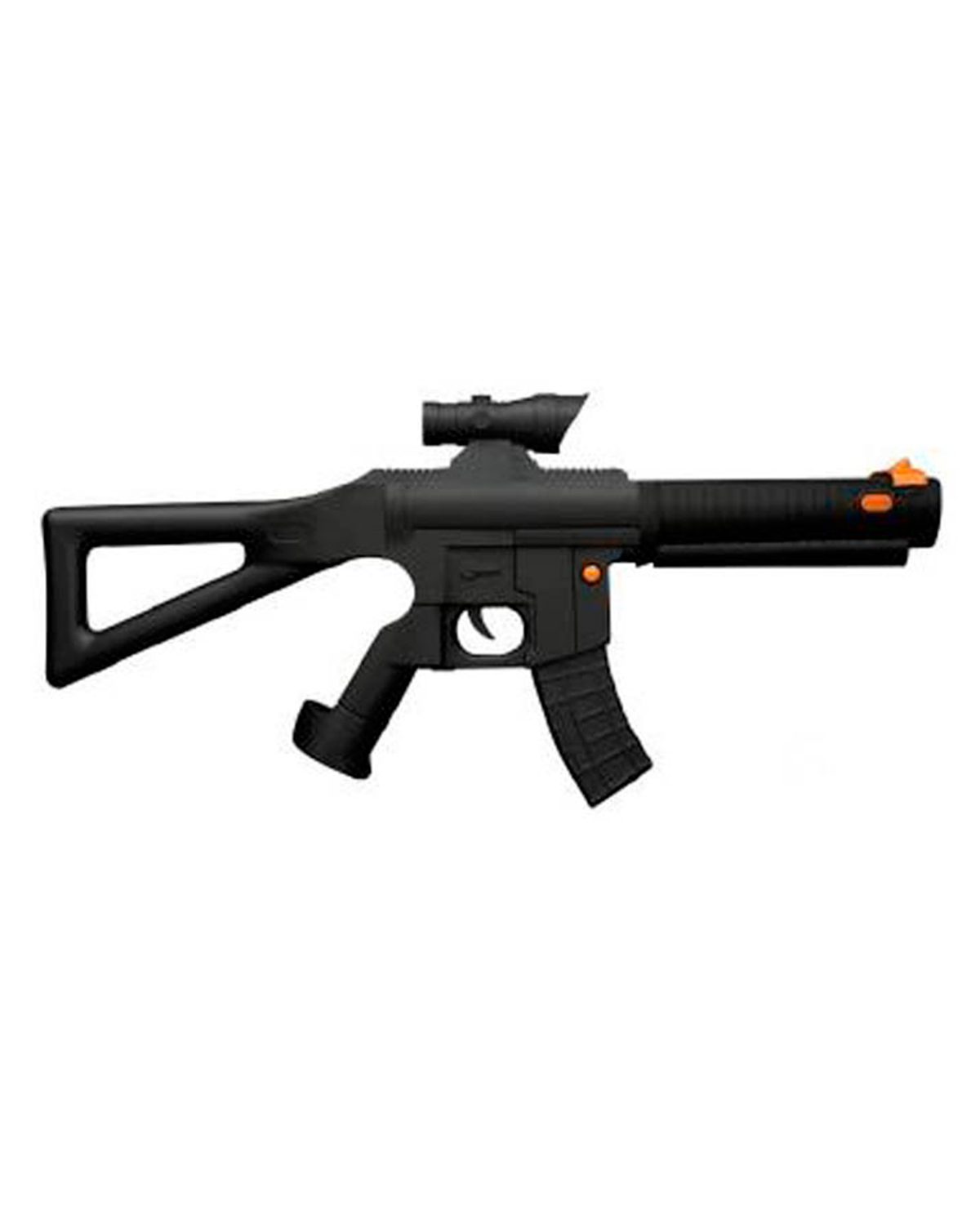 Tiene la apariencia de un arma real, incluyendo la mira telescópica y el cargador mientras que permite el fácil acceso a los botones de los mandos.