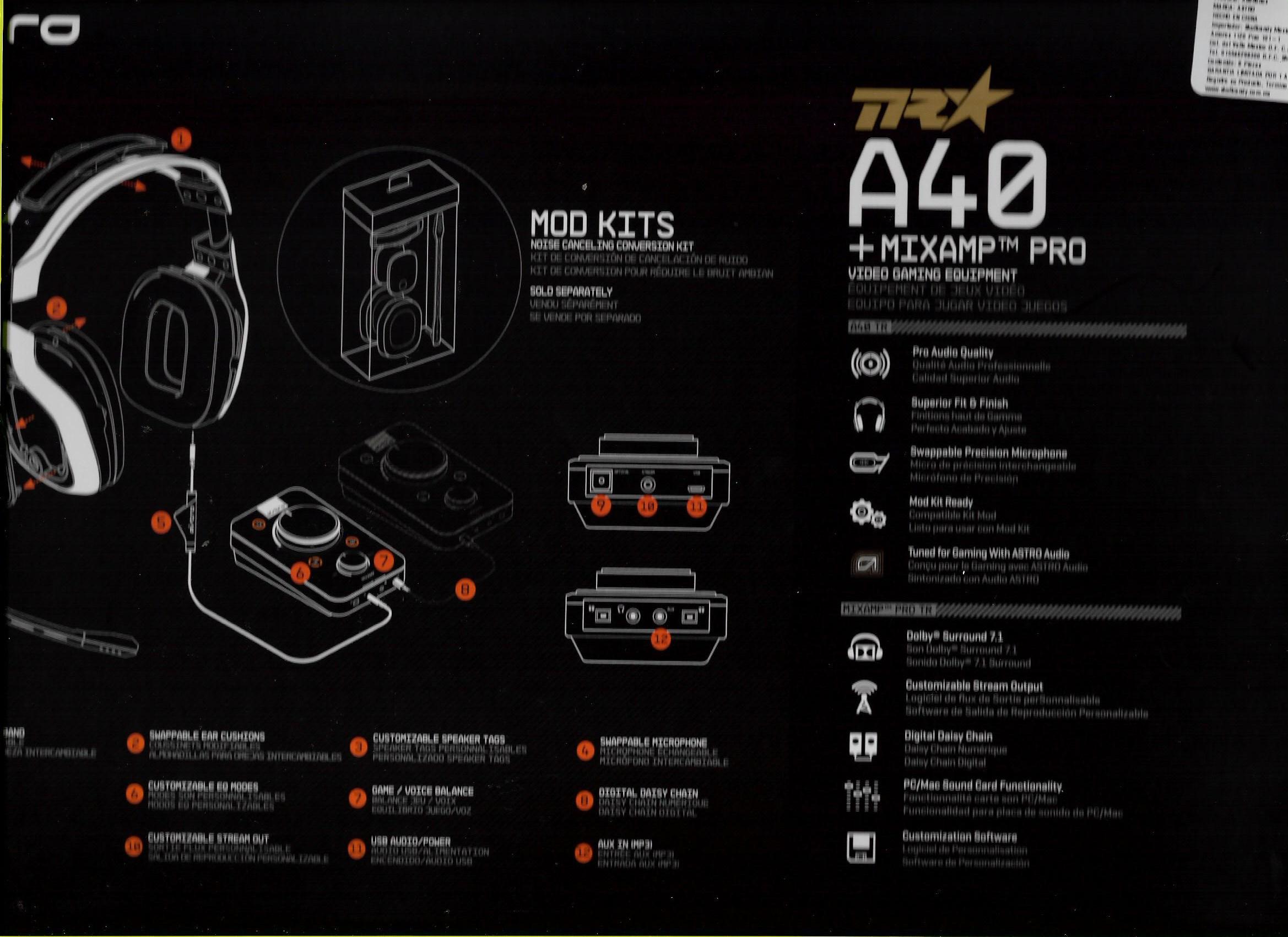 Listos para usarse en casa, para jugar en una Red de Área Local o en el torneo PRO más ruidoso, puedes transformar los audífonos A40 TR de un modelo abierto a cerrado para cancelar el ruido, al cambiar componentes como las tapas de las bocinas, el micrófono y las almohadillas de las bocinas que se venden por separado en ASTRO Mod Kits. Para verdaderos Live Streamers, el MixAmp™ Pro TR fue re diseñado con componentes totalmente digitales para volverlo libre de LAG y de interferencia. El software incluido ASTRO COMMAND CENTER, permite a los profesionales y a los Live Streamers ajustar cada parámetro de entrada y salida del MixAmp™ Pro TR para ajustarse a cualquier configuración. Todos los productos TR son el equipo Oficial de Call of Duty: Black Ops 3 y son utilizados por los mejores equipos profesionales de Call of Duty como Optic Gaming y Team Envyus.