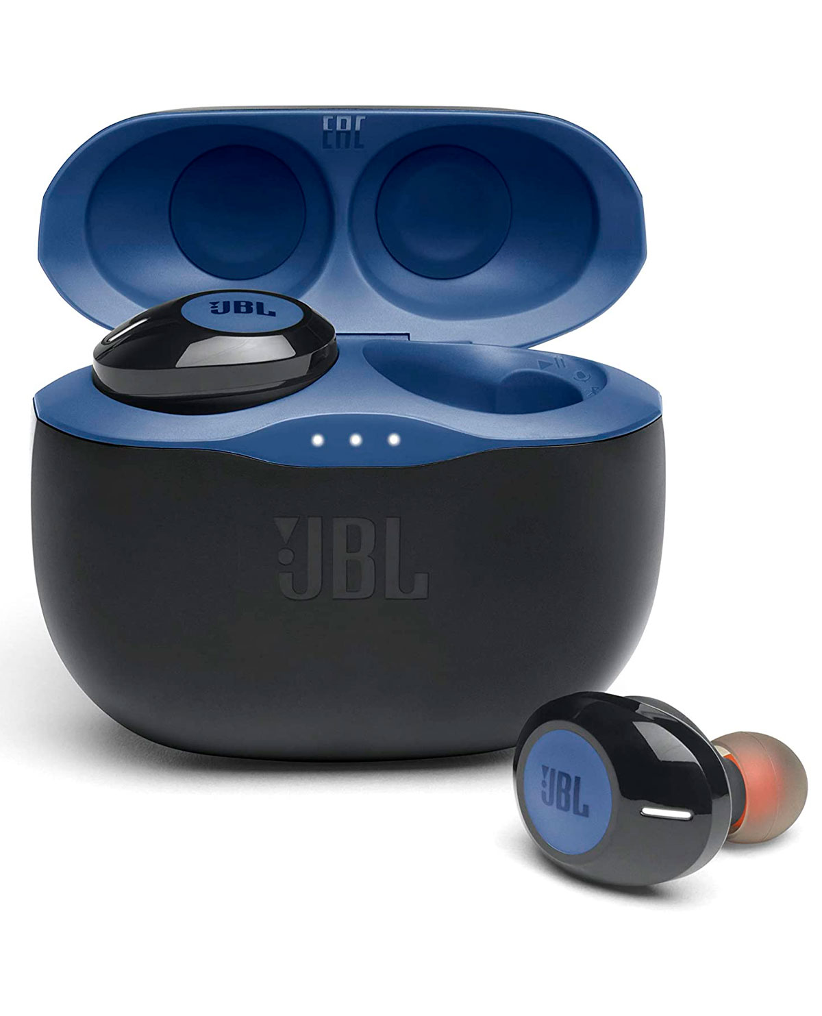 – Componentes incluidos: JBL TUNE 125TWS, 3 tamaños de almohadillas (S, M, L), cable de carga USB tipo C, funda de carga
