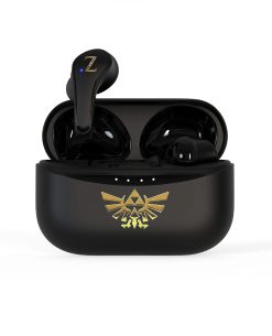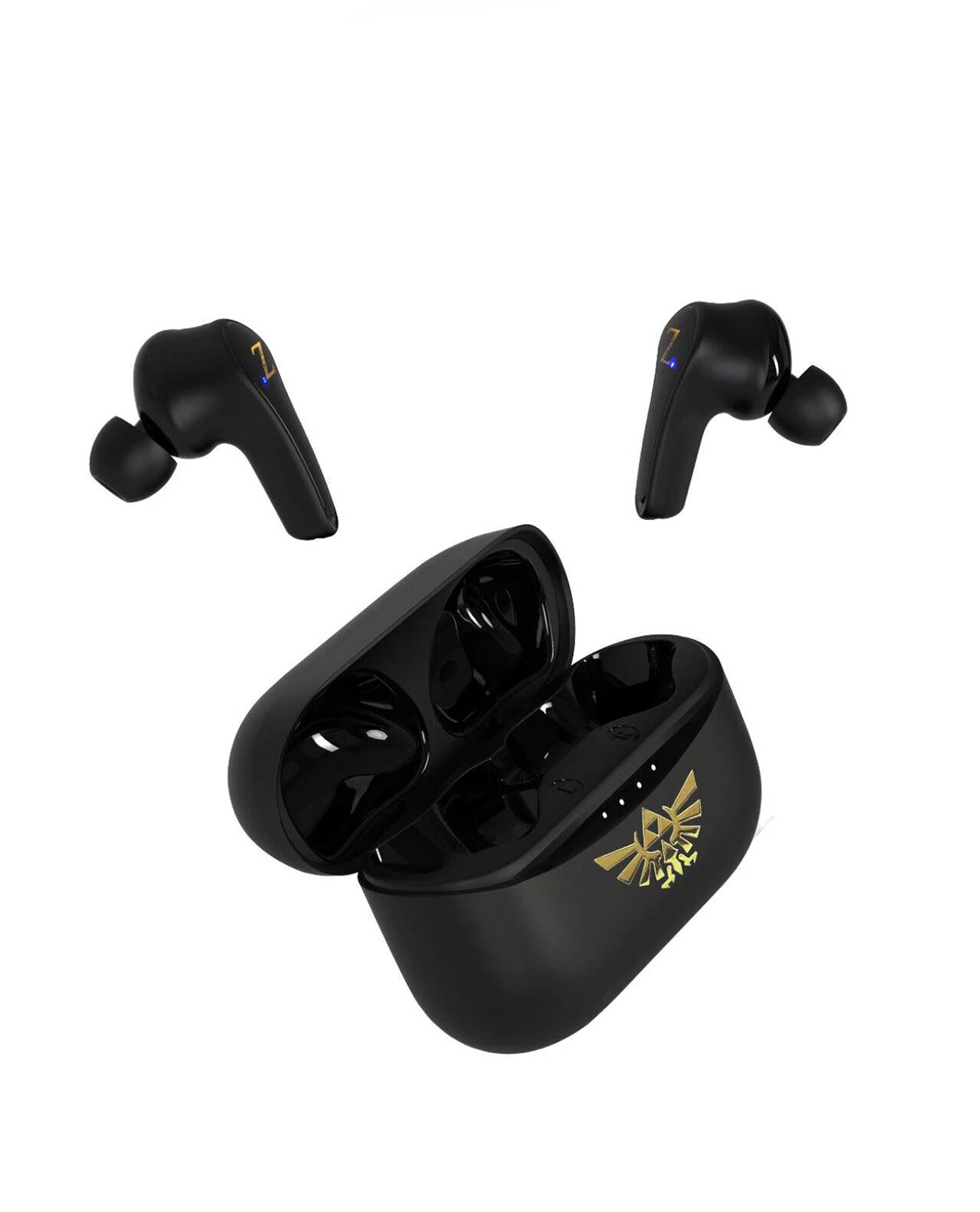 Los auriculares TWS de The Legend of Zelda ofrecen una experiencia de audio completa, nítida y de calidad superior. Estos auriculares inalámbricos y su estuche cuentan con tecnología Bluetooth V5.3 en cada auricular y son de un elegante color negro con detalles dorados. El estuche de carga USB tipo C proporciona hasta 6 horas de tiempo de escucha con 3 cargas adicionales. Elige entre dos tamaños de almohadillas de silicona suave (pequeñas y grandes) para brindar un ajuste personalizado y crear un sello acústico para una experiencia de escucha aún más inmersiva.