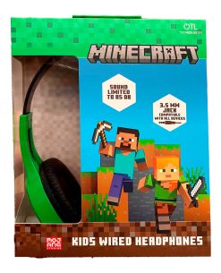 ¡Haz que la diversión cobre vida con los audífonos oficiales de Minecraft! Inspirados en el icónico personaje Creeper, estos auriculares verdes con cable son el accesorio perfecto para pequeños gamers de entre 3 y 7 años.