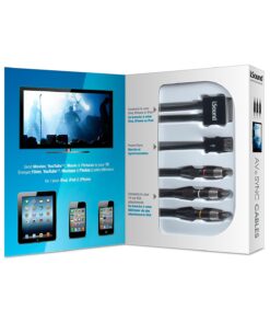 Estos cables te permiten fácilmente conectar tu Ipod o Iphone a cualquier televisor con entradas RCA. Así mismo, también te permite conectarlo a cualquier stereo o reproductor que cuente con entradas de audio RCA.