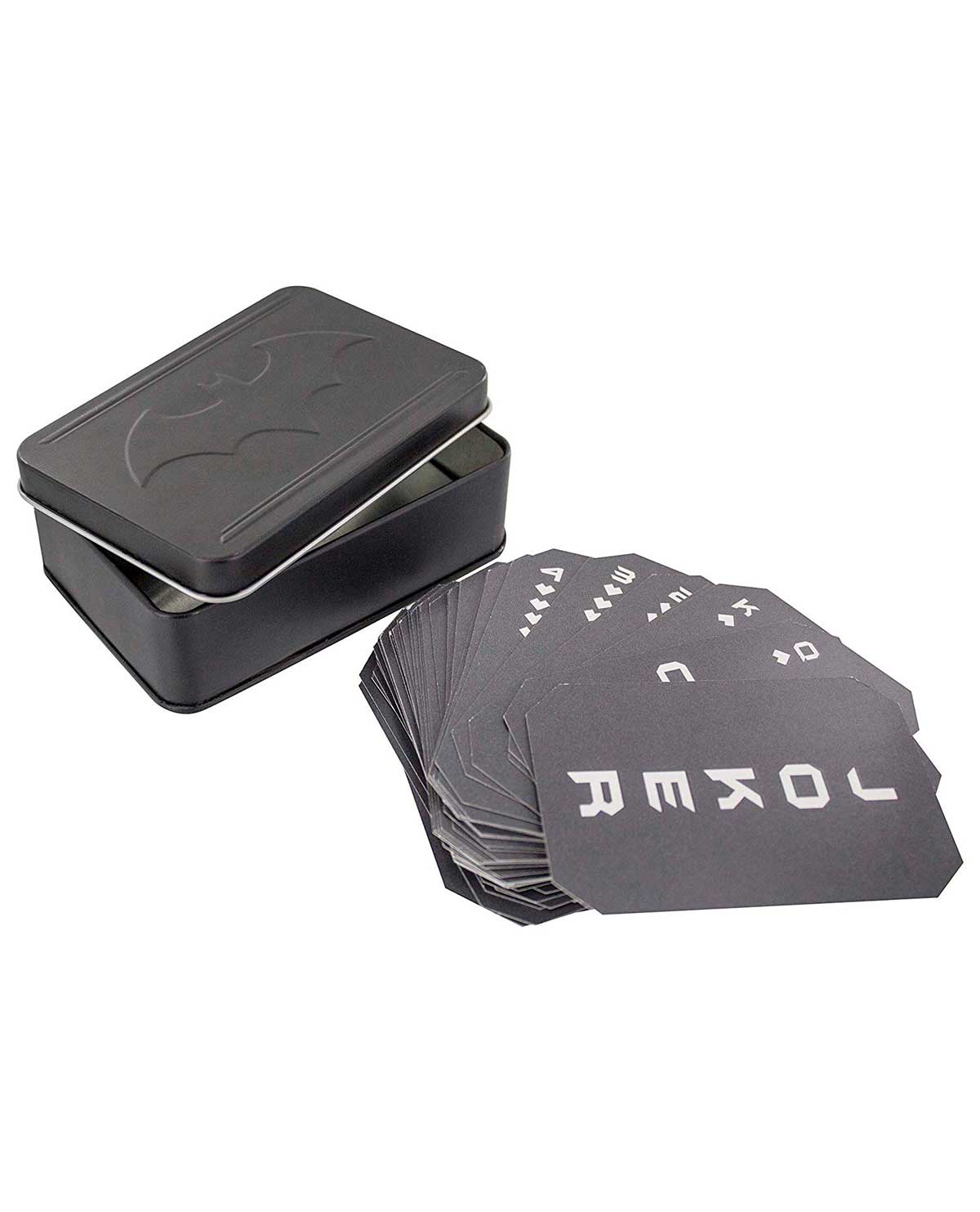 Cada carta incluye un diseño elegante y estilizado del logo de Batman.