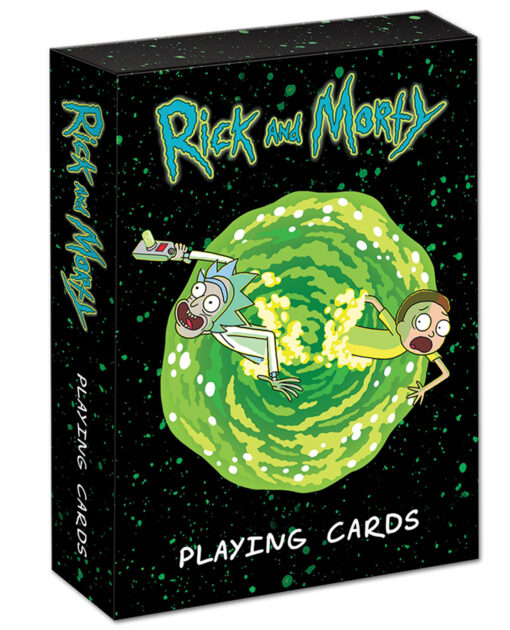 Sigue las desventuras intergalácticas de Rick y su nieto Morty con este mazo de 52 cartas con ilustraciones de tus personajes favoritos de la aclamada serie Rick & Morty.