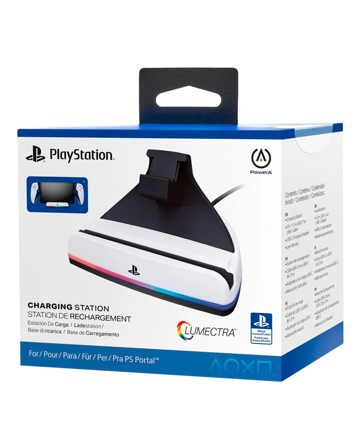 Carga con estilo y exhibe tu reproductor remoto PlayStation Portal™ junto a tu consola PS5 con esta estación de carga oficial PowerA. Diseñada para ofrecer funcionalidad, estabilidad y un toque visual único gracias a su iluminación RGB.