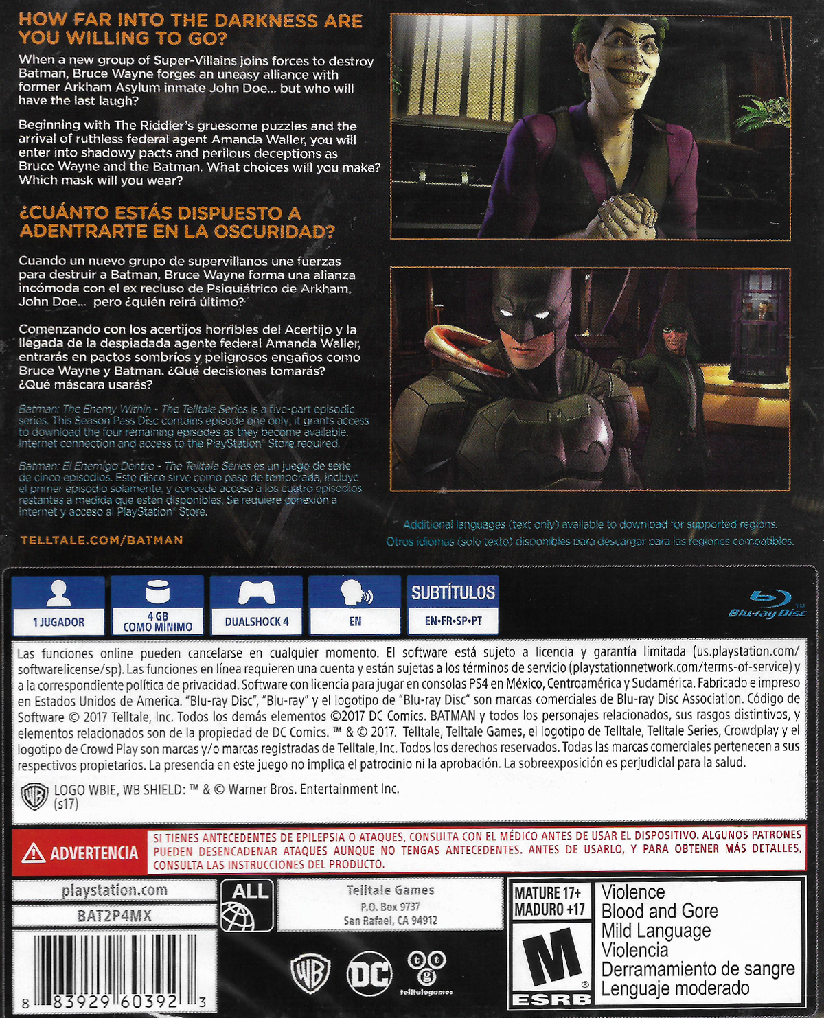 Sé el primero en valorar “BATMAN THE TELLTALE SERIES 2 THE ENEMY WITHIN” Cancelar respuesta