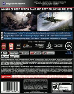 Tercera entrega de la popular saga de acción bélica Battlefield. Un poderoso nuevo motor gráfico llamado Frostbite 2 y una experiencia más cruda y más realista de lo conocido hasta ahora en la franquicia son algunas de sus principales características.