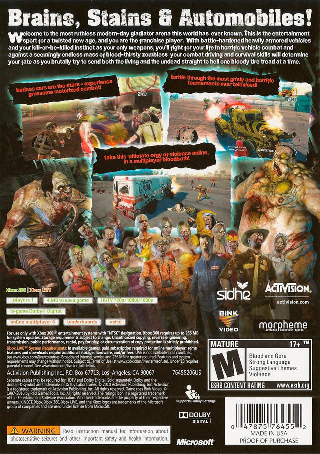 En la modalidad para un solo jugador deberás equipar tu vehículo con el mejor armamento posible para asegurar tu victoria. Entre las armas que puedes equipar se encuentra una rápida ametralladora, un ardiente lanzallamas e incluso hasta un poderoso lanzacohetes. También puedes participar en una modalidad multijugador donde hasta cuatro jugadores pueden competir en un duelo todos contra todos de proporciones catastroficas.