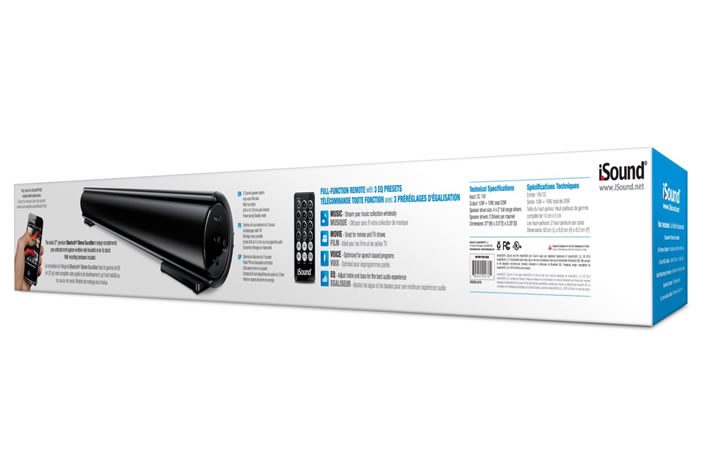 Bocina en forma de barra que ofrece un sonido de alta fidelidad a través de conexión Bluetooth o mediante un cable de audio de 3,5 mm desde algún Smartphone, tablet, computadora y otros dispositivos de audio.
