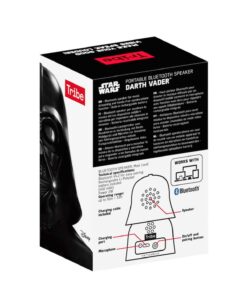 Tribe nos presenta una nueva línea de productos, basados en la saga Star Wars. En este caso se trata de un altavoz bluetooth, basado en el personaje Darth Vader. Es un altavoz para poder escuchar música, además incluye micrófono y botón para llamadas de manos libres. Mide 60x44x90mm, tiene una distancia de operación de 10 m y dura hasta 4 horas. Tiene una potencia de salida de 2W y una batería de Li-Polymer.