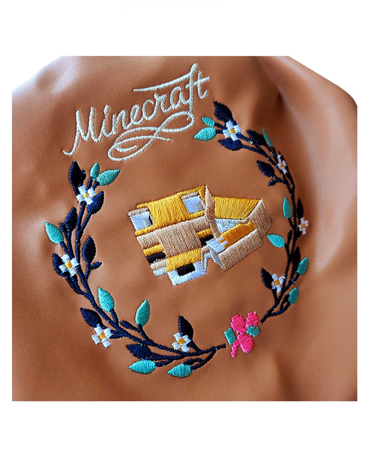Con detalles bordados de flores y el encantador Fox, esta bolsa combina la estética rústica de Minecraft con un toque de estilo y elegancia.