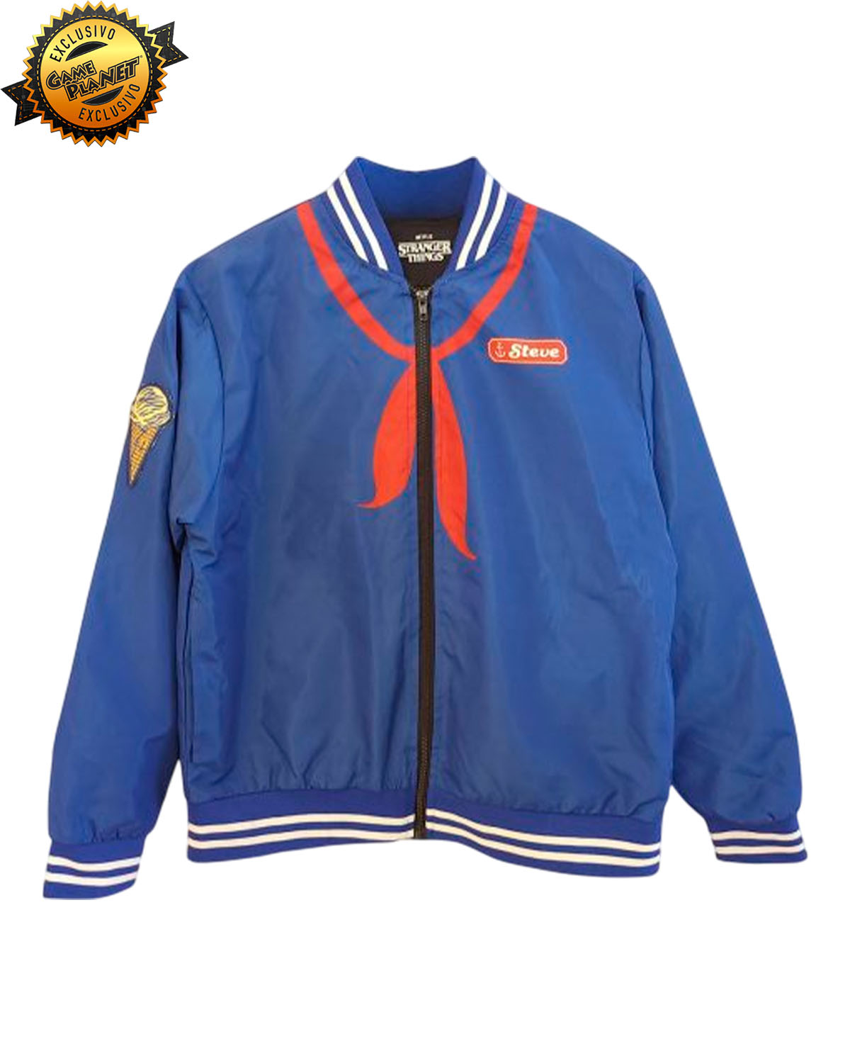 Además, incluye un divertido parche de helado en una de las mangas para un toque auténtico. Ideal para los fans de la serie, esta bomber combina estilo y nostalgia, permitiéndote llevar un pedazo del Upside Down en tu día a día.