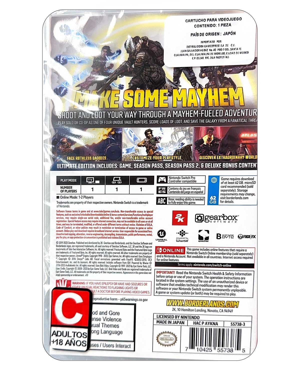 Ábrete camino a través de múltiples mundos como uno de los cuatro Vault Hunters, los rudos buscadores de tesoros de Borderlands, cada uno con abundantes árboles de habilidades, capacidades y personalización. Juega solo o únete a un amigo en una cooperativa en línea para dos jugadores para enfrentarte a enemigos mortales, obtener un enorme botín y salvar tu hogar de los líderes de culto más despiadados de la galaxia.