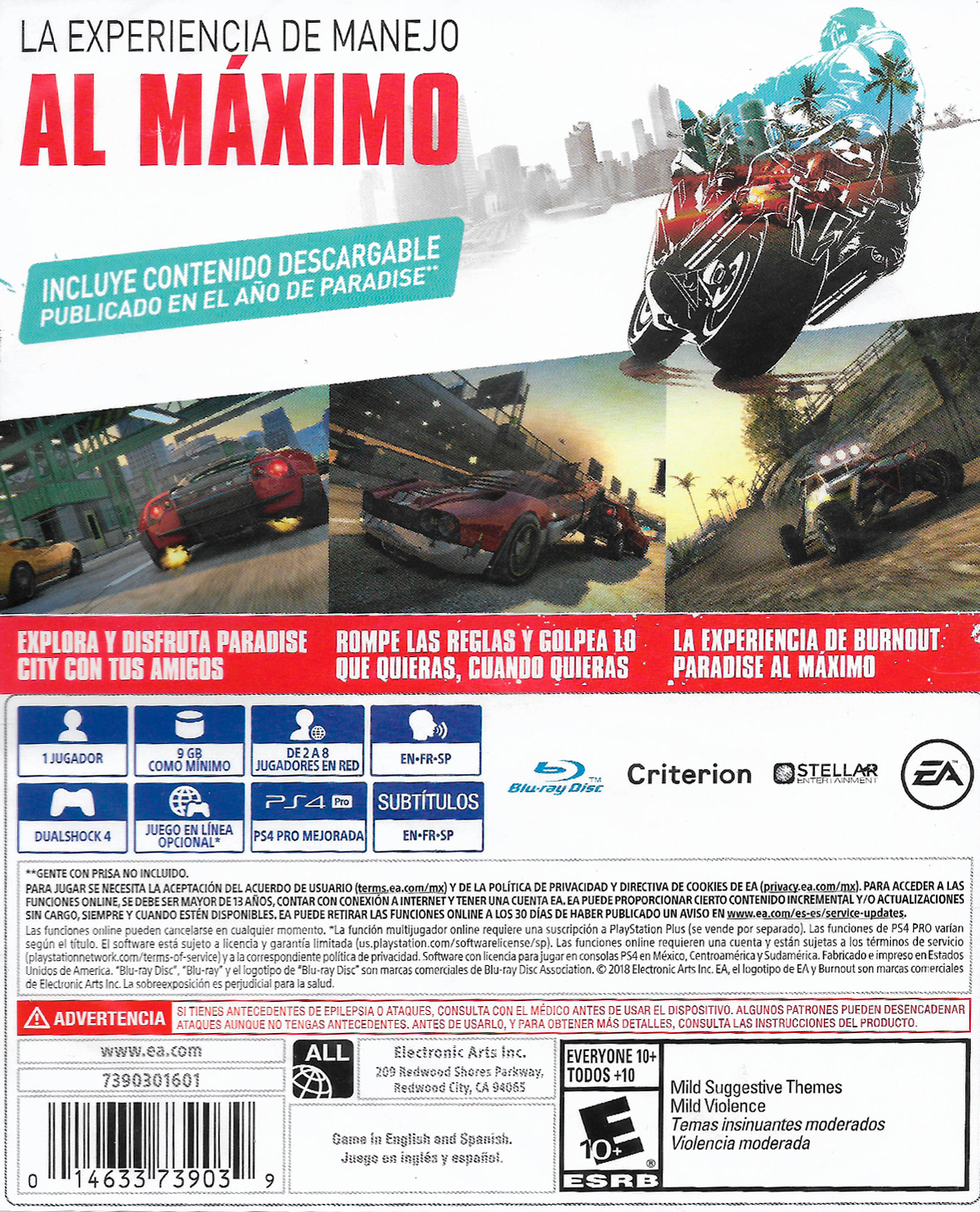En 2008, el original Burnout Paradise salió rugiendo de la línea de salida listo para demoler la competencia. Con carreras vertiginosas, acrobacias de alto vuelo y, lo que es más importante, desvergonzada cantidad de destrucción automotriz, Burnout Paradise estableció el listón de lo que podría ser un juego de carreras de acción. Y ahora, diez años después, está de vuelta y listo para mostrar una nueva generación de consolas, la verdadera definición de un “gran éxito”.