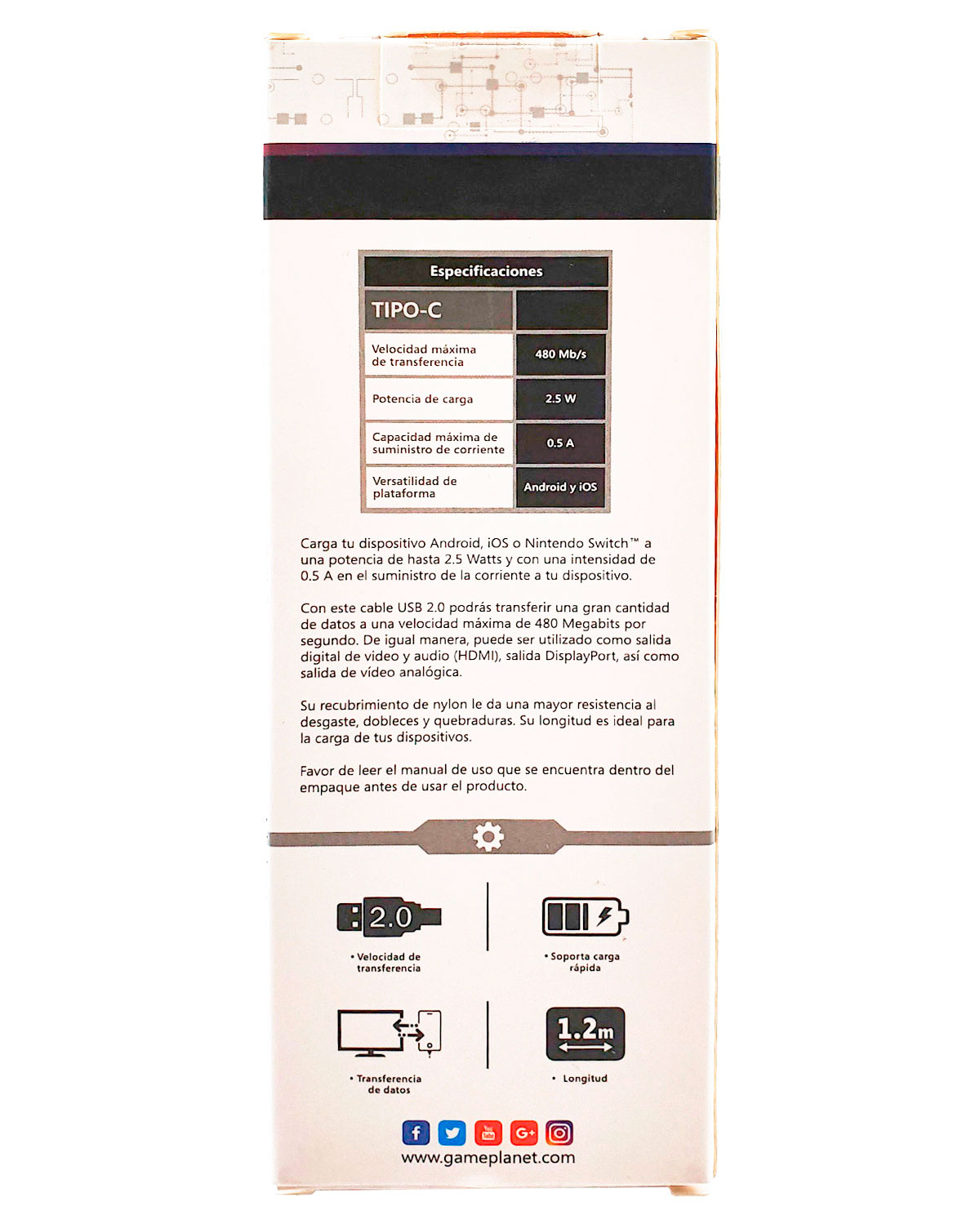 Su recubrimiento de nylon le da una mayor resistencia al desgaste, dobleces y quemaduras. So longitud es ideal para la carga de tus dispositivos.