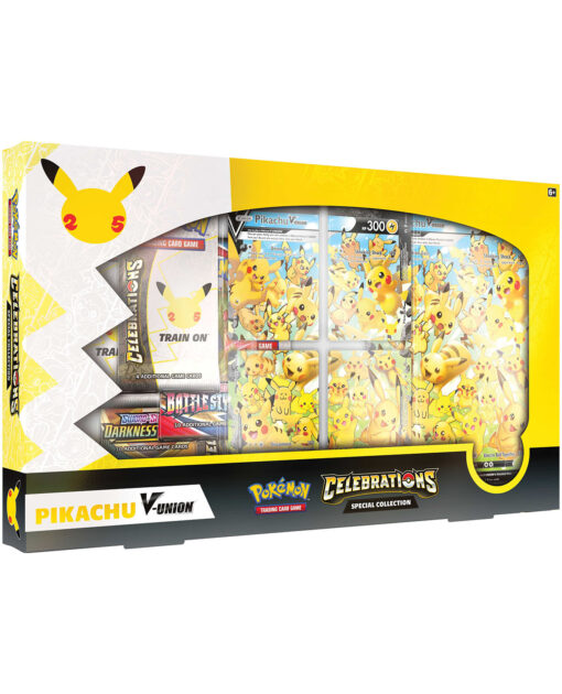 ¡Celebra algunos de los mejores momentos de Pokémon durante 25 años de aventuras, descubrimientos y amistad! La expansión Celebrations ofrece mucho de qué entusiasmarse, incluida la oportunidad de pasear por el carril de la memoria con las cartas clásicas de JCC Pokémon. Agrega un alegre desfile de Pokémon legendarios, míticos y otros amados Pokémon a tu colección, incluidos Mew, Ho-Oh, Zamazenta, Flying Pikachu y Surfing Pikachu. ¡Únete a la fiesta con la expansión Celebraciones de JCC Pokémon!
