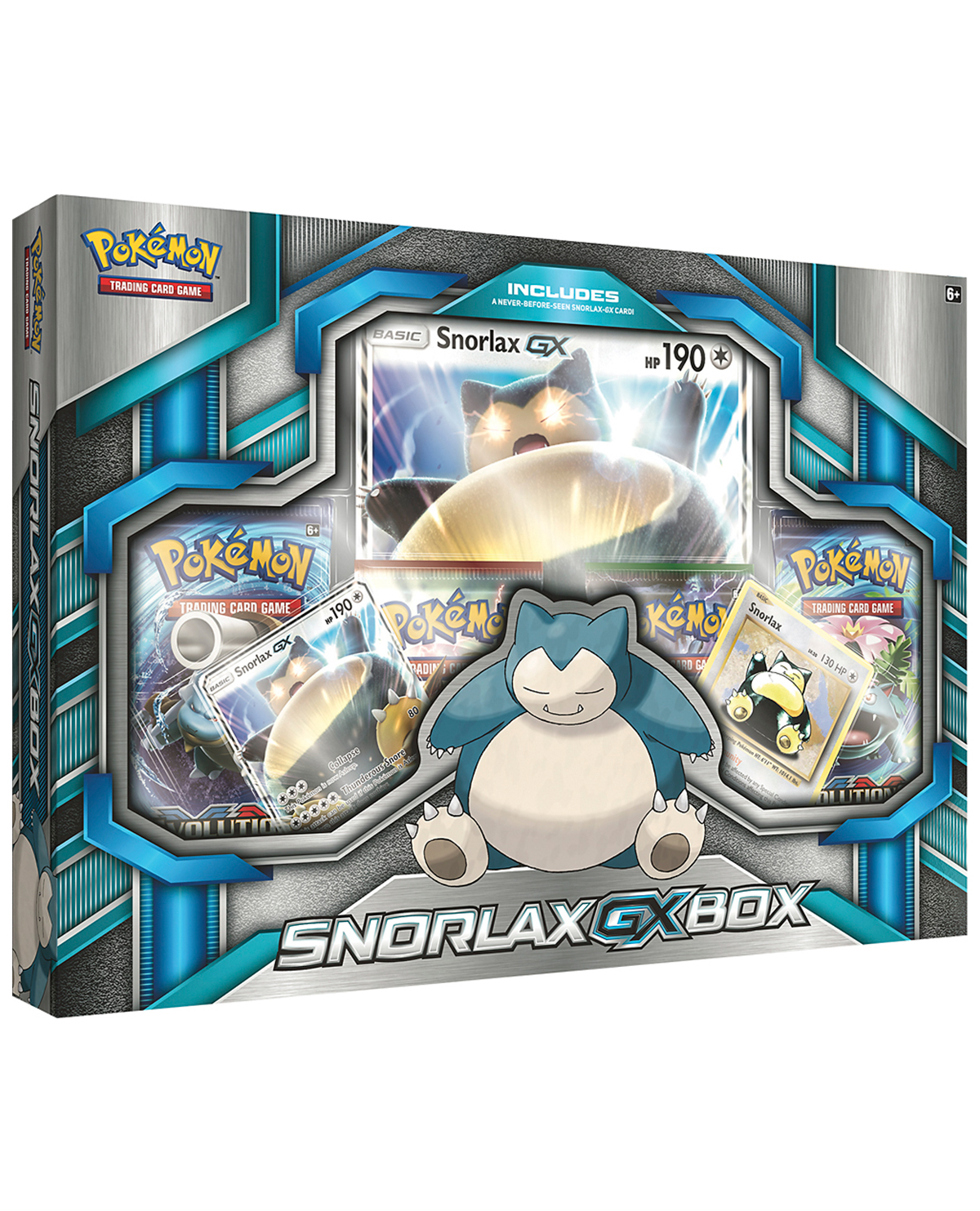 Snorlax es poderoso incluso cuando duerme, ¡y es aún más peligroso cuando finalmente se despierta como un Pokémon-GX! La caja Pokémon TCG: Snorlax-GX te trae lo mejor de dos estilos de Snorlax: Snorlax al estilo de las primeras cartas de Pokémon y un Snorlax-GX con una nueva mecánica de juego. ¡Dormido o despierto, el poderoso Snorlax sueña con la victoria!