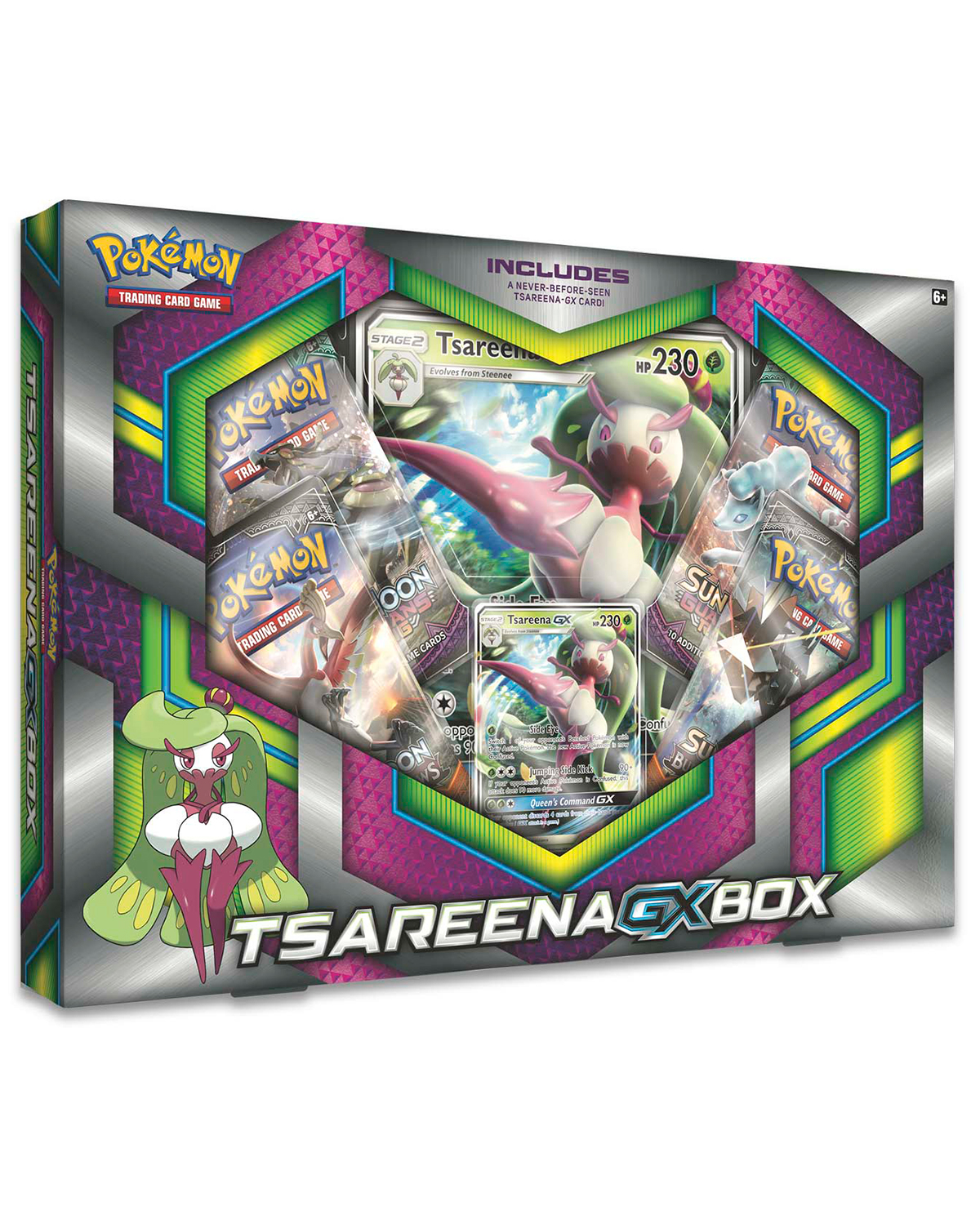 El Pokémon TCG: Tsareena-GX Box incluye: