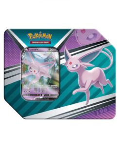 Lleva tu juego a otro nivel con la lata Héroes V de JCC Pokémon, ¡que llega cargada con las poderosas Evoluciones de Eevee en forma de Pokémon V! ¿Vas a escoger el relajante resplandor de Espeon V, la impactante mirada de Umbreon V o los encantadores regalos de Sylveon V? Estas latas no solo incorporan a un Pokémon V listo para el combate, sino que encierran una mina de tesoros en el interior de los paquetes de mejora de JCC Pokémon.