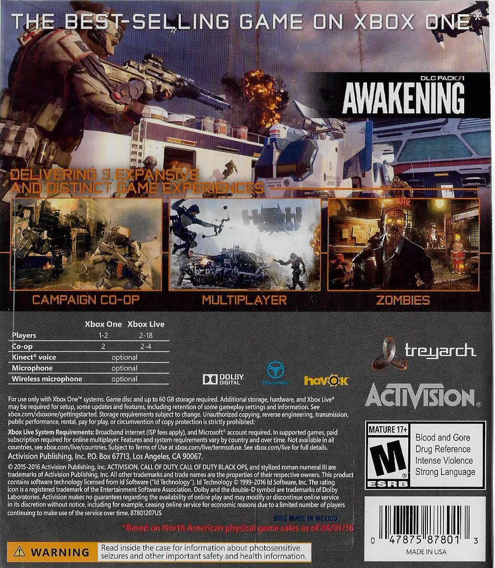 Call of Duty: Black Ops 3 introduce a los jugadores a un futuro oscuro y retorcido, en el que ha surgido una nueva generación de soldados Black Ops, y la línea entre nuestra propia humanidad y la tecnología que hemos creado para mantenernos a la vanguardia es difusa, en un mundo donde la más avanzada robótica militar define la guerra.