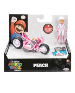 ¡Colecciona tus personajes favoritos con la figura de 2,5” pulgadas (6.5 cm) de The Super Mario Bros. Movie con corredores que se tiran hacia atrás! Inspirada en la película, la figura de Peach tiene una articulación única que le permite sentarse en su vehículo.