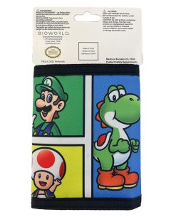 Luce increíble con este modelo de tus personajes favoritos como Mario, Luigi, Yoshi, y Toad. Con compartimientos especiales para billetes, tarjetas y monedas, esta cartera está dividida en tres partes y tiene una línea de velcro para cerrar y abrir. Hecho con materiales de alta calidad para una larga duración. Producto oficial autorizado.