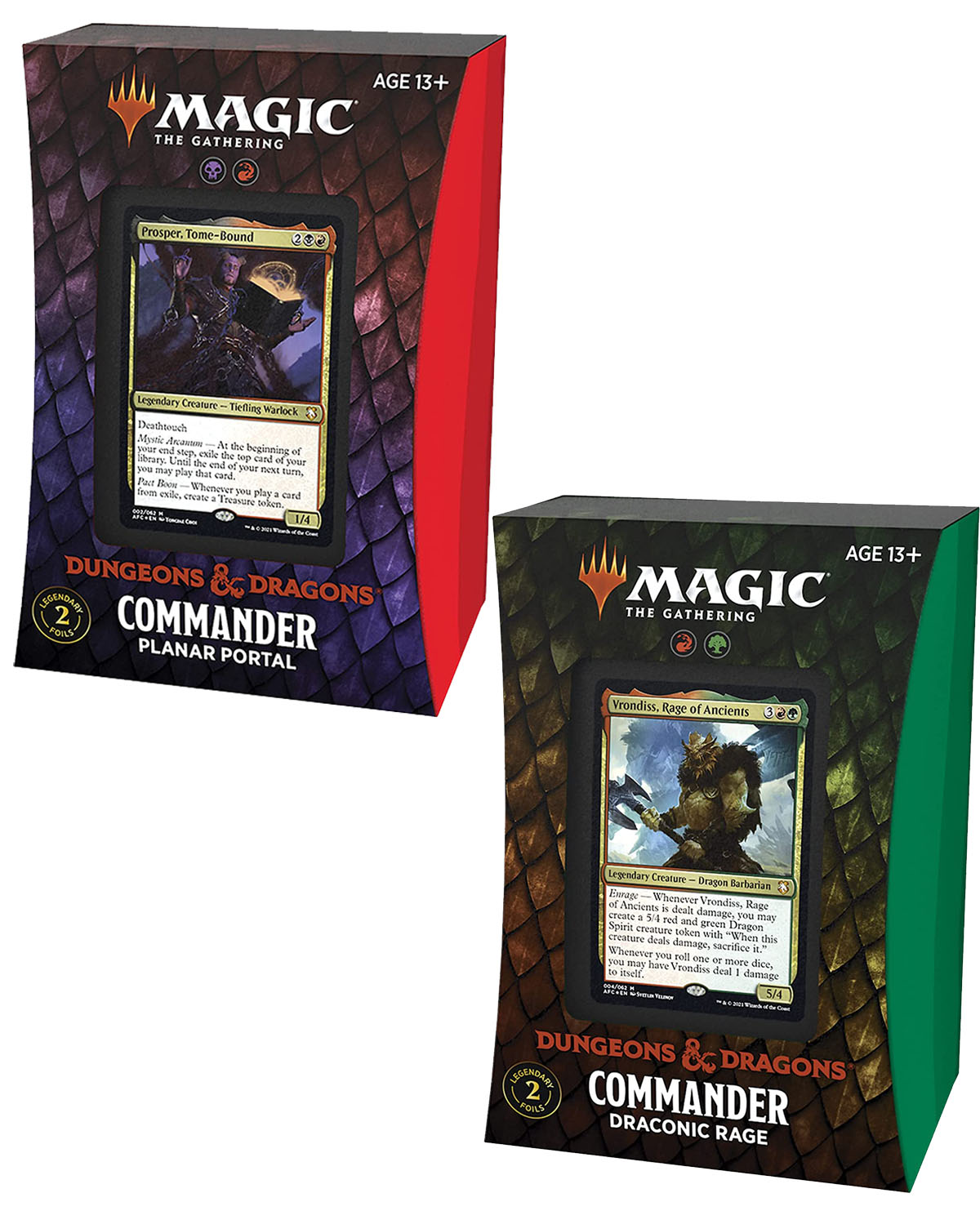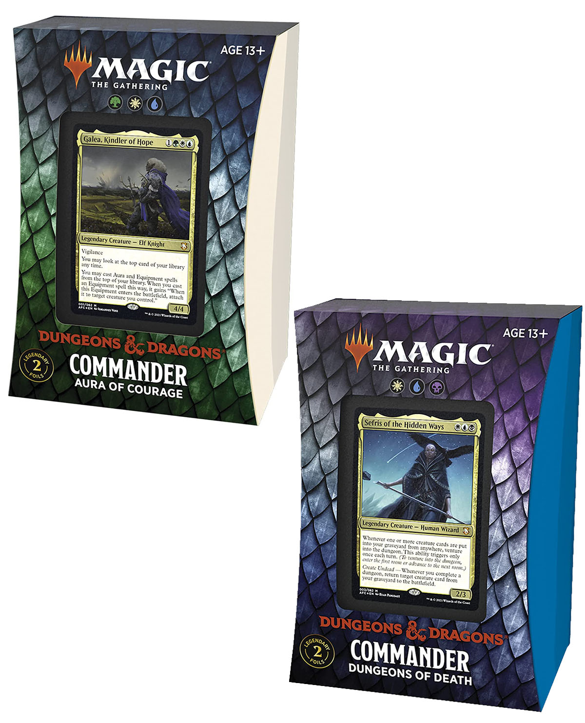 Puedes formar un grupo completo de aventureros con los deck de Commander de Aventuras en Forgotten Realms, preparados para jugar al formato Commander. Cada uno de los cuatro mazos contiene 17 cartas nuevas, más una nueva carta de comandante foil grabado especial (no legal en torneos, impresa en cartulina gruesa), como los que debutaron en los mazos de Commander de Strixhaven: Academia de Magos. Esto es lo que encontrarás en cada mazo: