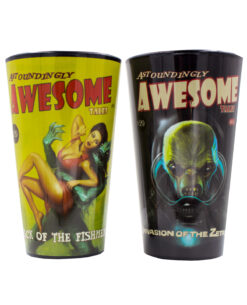 Los vasos son de 16 onzas, son de vidrio resistentes a cualquier tipo de guerra, las imágenes tienen un diseño de clásicos de terror cinematográfico.