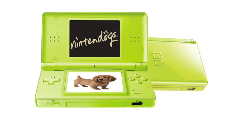 CONSOLA NINTENDO DS VERDE CON NINTENDOGS