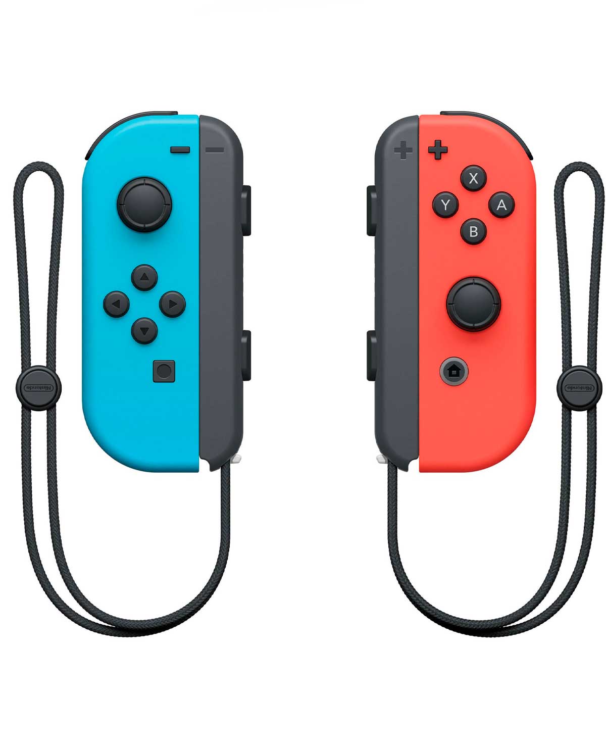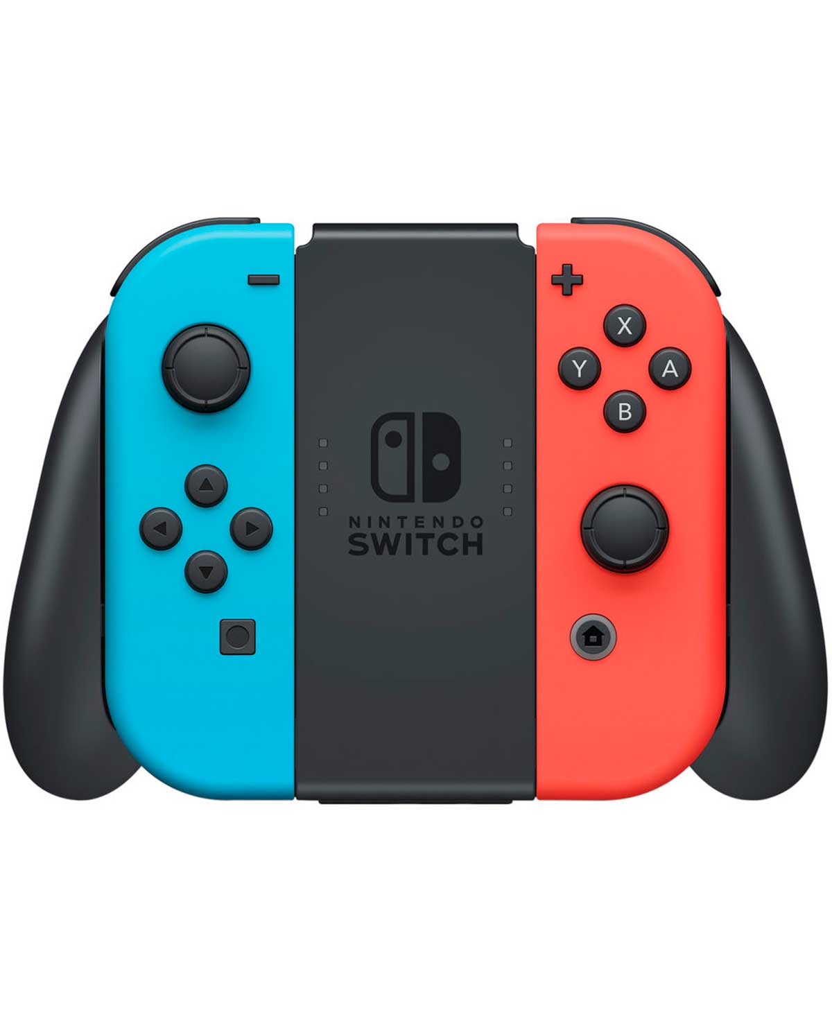 - Nintendo Switch viene con dos Joy-Con que pueden actuar como un controlador independiente con un stick analógico, un complemento completo de botones frontales y laterales, tecnología de detección de movimiento incorporada y nuevo HD Rumble; pueden insertarse en un accesorio de agarre Joy-Con para ser utilizado como un controlador tradicional, sostenido cómodamente en cada mano para controles de movimiento izquierdo y derecho independientes, o compartido entre dos jugadores para juegos de multijugador instantáneos frente al televisor o fuera de él.