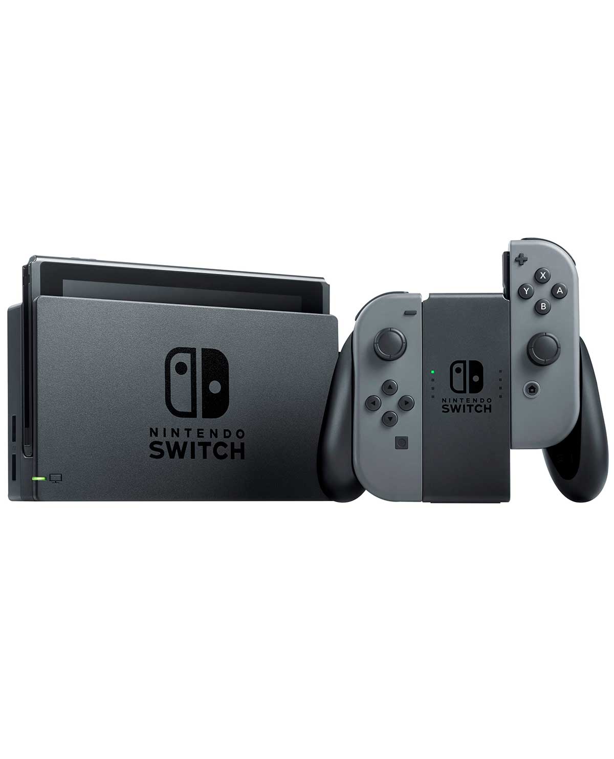 - Nintendo Switch viene con dos Joy-Con que pueden actuar como un controlador independiente con un stick analógico, un complemento completo de botones frontales y laterales, tecnología de detección de movimiento incorporada y nuevo HD Rumble; pueden insertarse en un accesorio de agarre Joy-Con para ser utilizado como un controlador tradicional, sostenido cómodamente en cada mano para controles de movimiento izquierdo y derecho independientes, o compartido entre dos jugadores para juegos de multijugador instantáneos frente al televisor o fuera de él.