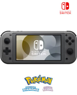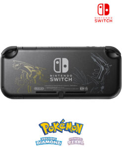 Esta consola Nintendo Switch™ Lite es la primera en contar con una superficie metálica y botones negros. El reverso muestra un artístico diseño de los Pokémon legendarios Dialgia y Palkia de los juegos Pokémon™ Brilliant Diamond y Pokémon™ Shining Pearl con un acabado de color oro y plata.