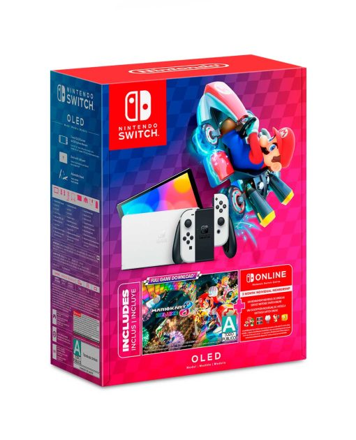 La consola cuenta con una vibrante pantalla OLED de 7" pulgadas (17.78 cm), un soporte ajustable y amplio, una base con puerto LAN para conexión por cable, almacenamiento interno de 64 GB y audio mejorado.