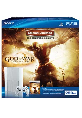 Incluye un control Dualshock 3 color blanco y videojuego God Of War Ascension edición estándar.