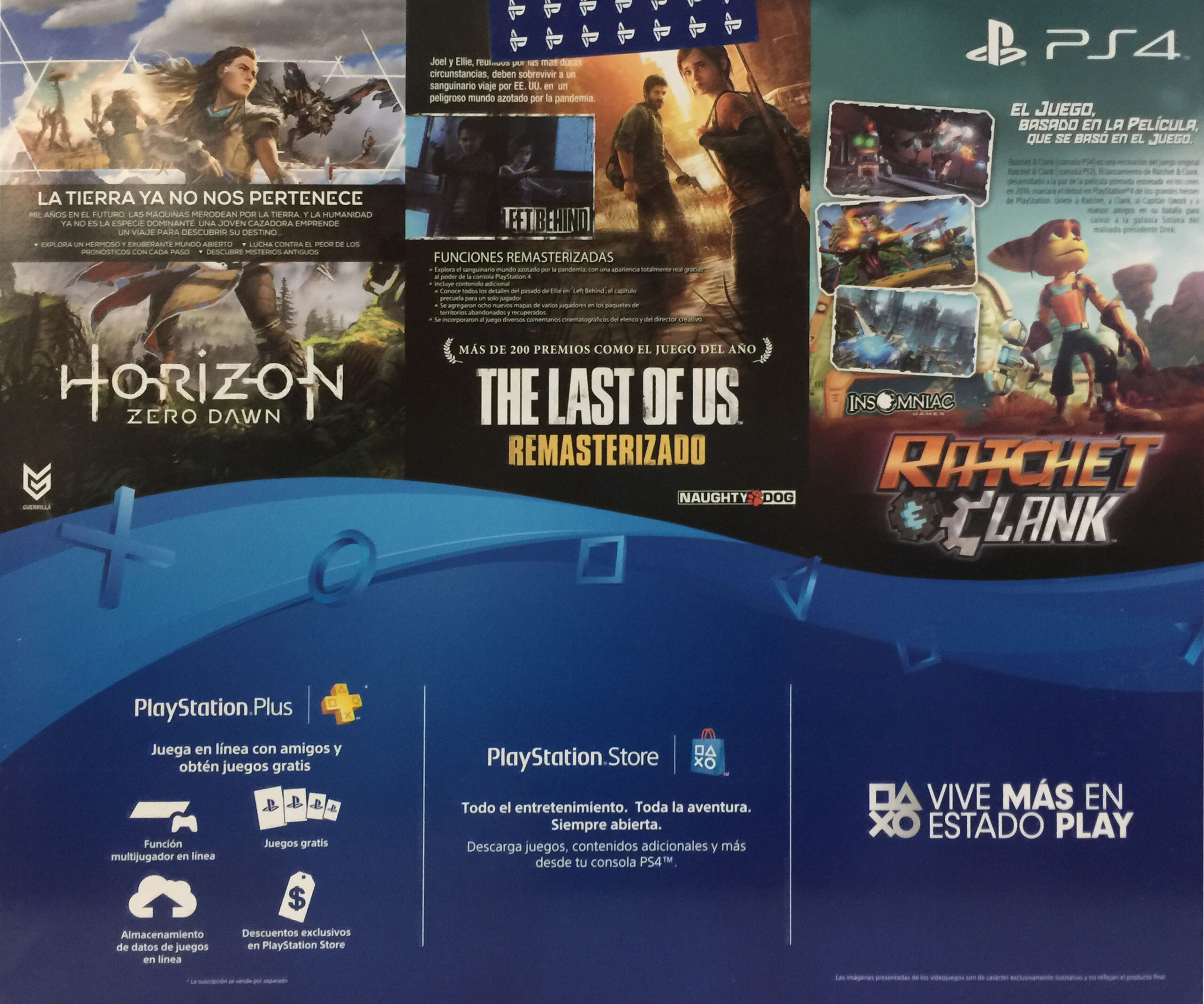 • Horizon Zero Down: En un exuberante mundo abierto postapocalíptico, las colosales criaturas mecanizadas dominan un territorio que le han arrebatado a la humanidad. Eres Aloy, una hábil cazadora que depende de su velocidad, astucia y agilidad para sobrevivir y proteger a su tribu contra la fuerza, el tamaño y el poderío bruto de las máquinas.