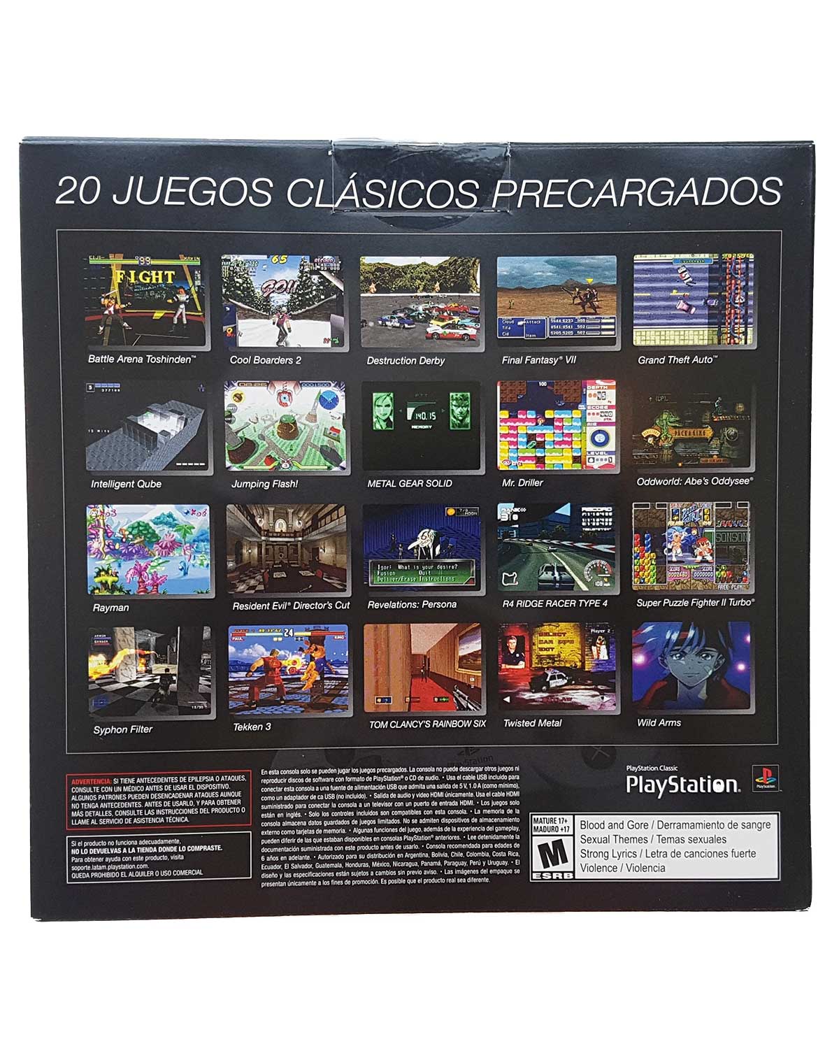 Una recreación miniatura de el PlayStation original, precargado con 20 de los mejores títulos de la era que cambio las reglas del juego.