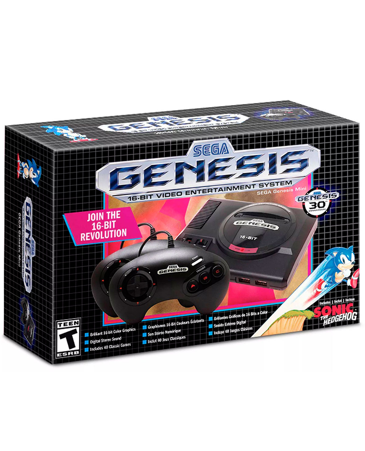 La icónica consola de SEGA Genesis que definió toda una generación de juegos regresa en una unidad miniaturizada y elegante. ¡La consola SEGA Genesis Mini está cargada con 40 juegos legendarios y está lista para jugar de inmediato!