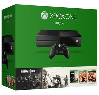 Pack compuesto por la consola Xbox One 1Tb Stand Alone + juego Rainbow Six Siege (formato físico) + Rainbow Six Vegas (formato digital) + Rainbow Six Vegas 2 (formato digital)