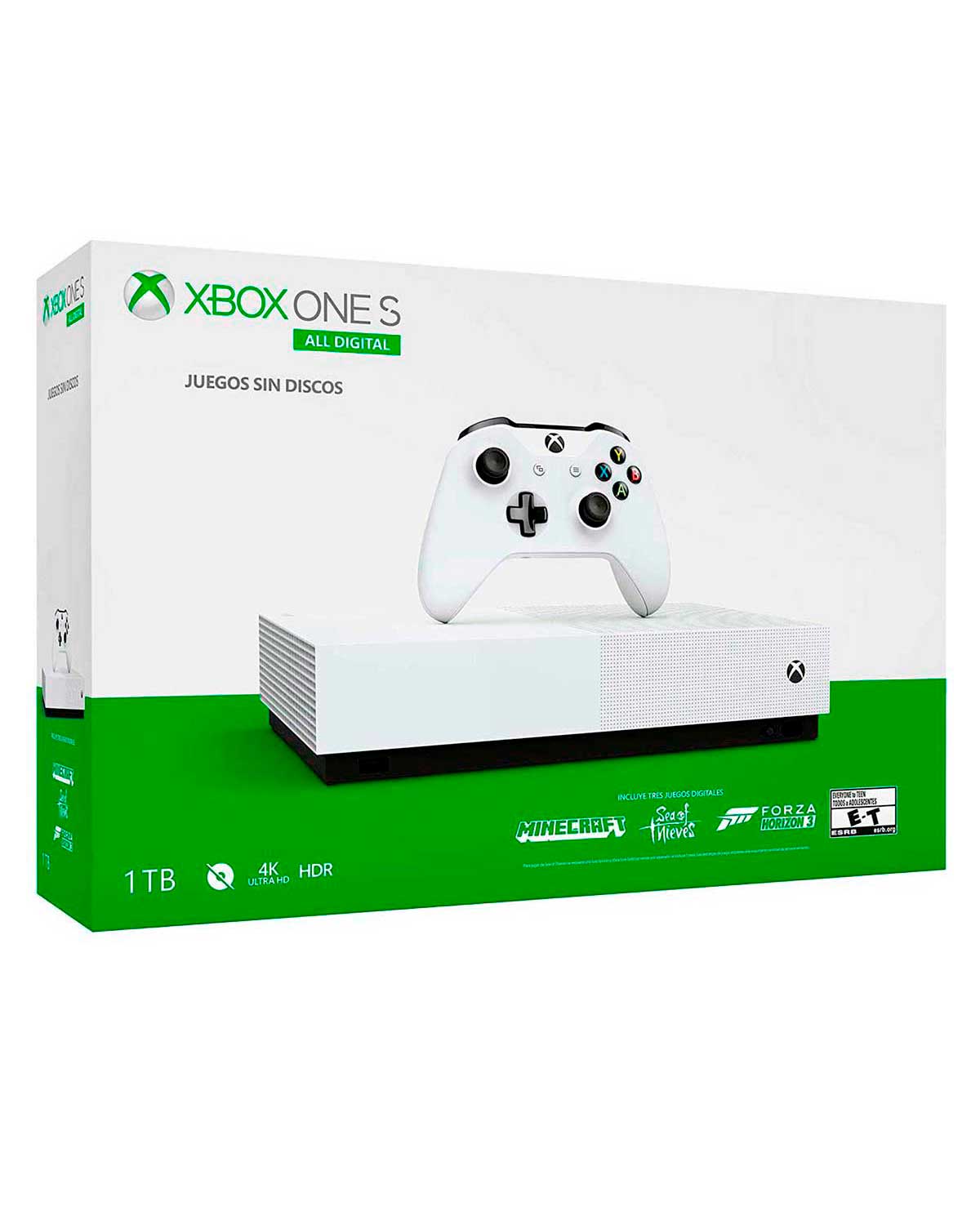 •El paquete incluye: Consola Xbox One S de 1 TB Edición All-Digital (consola sin discos), control inalámbrico, suscripción de Xbox Live Gold por un mes y la