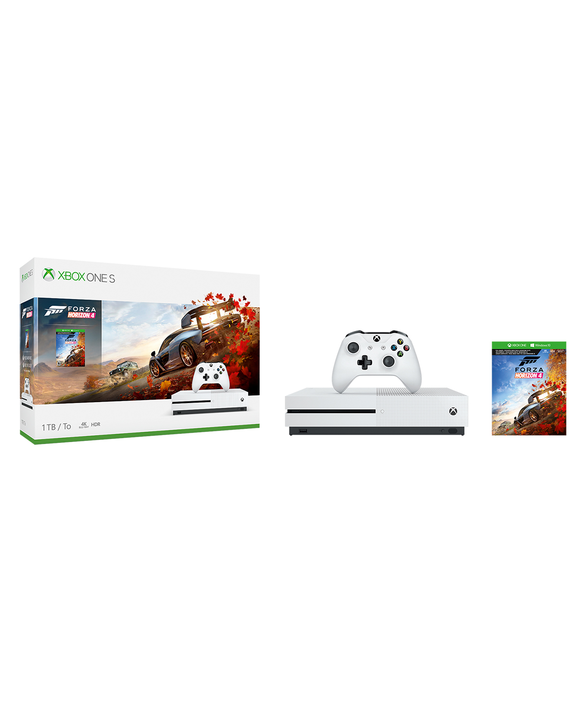 Obtén el paquete Forza Horizon 4 para Xbox One S y experimenta un mundo abierto compartido donde las estaciones dinámicas cambian todo. Con la descarga completa de Forza Horizon 4, explora Gran Bretaña, colecciona 450 autos o decide divertirte en el modo multijugador para competir con los mejores del mundo. Si estás corriendo carreras, haciendo acrobacias, viendo películas en 4 K o jugando partidas en streaming, este es el mejor momento para jugar con Xbox One.