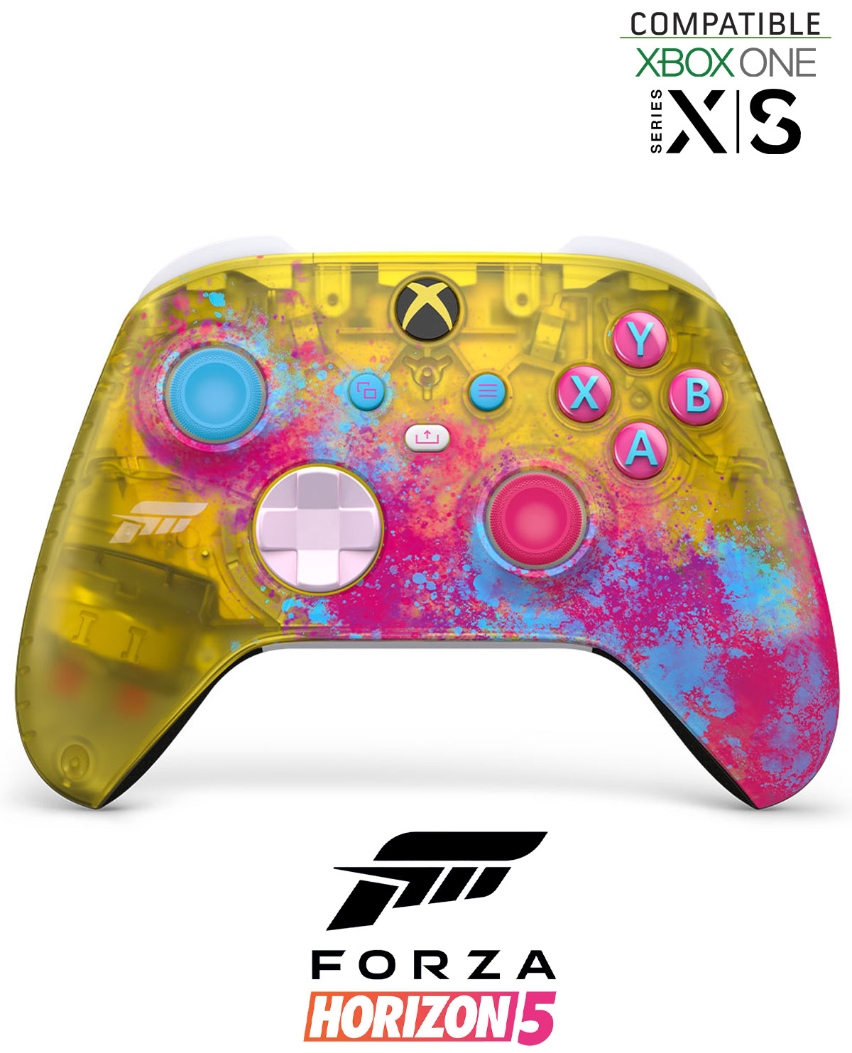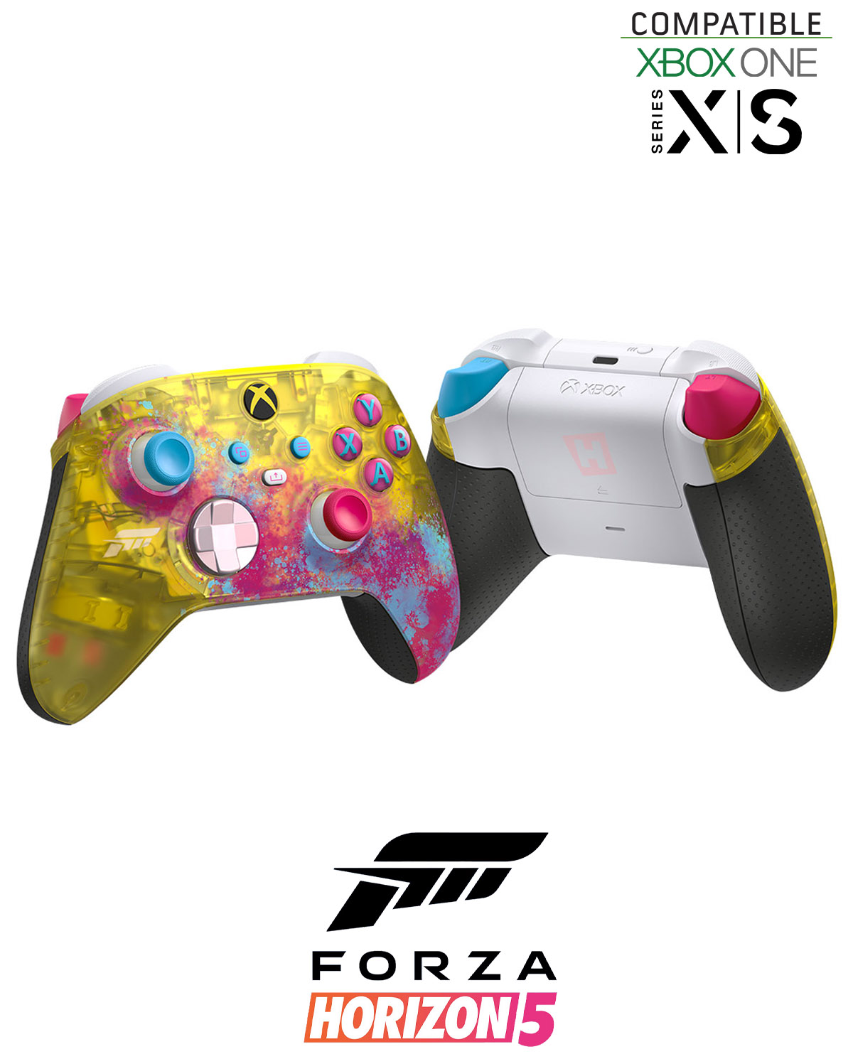 Usa el Control inalámbrico Xbox: Forza Horizon 5 Edición limitada para disfrutar de la aventura Horizon definitiva, con agarres personalizados inspirados en las carreras y un innovador acabado amarillo transparente. Toma el control de cualquier terreno con agarres texturizados, botones personalizados y patrones de agarres laterales tipo abolladura inspirados en los volantes de autos de rendimiento. Incluye contenido exclusivo: auto de edición Forza, artículo cosmético y expresión de sentimientos de victoria (el contenido descargable requiere el juego Forza Horizon 5, que se vende por separado).
